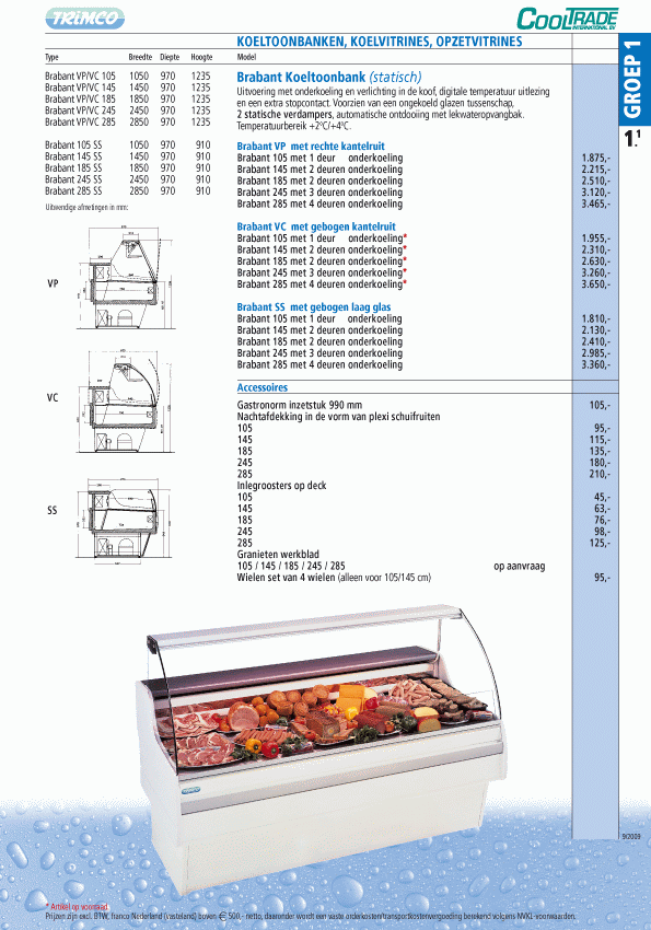 Zie productbrochure met prijzen van de Brabant koeltoonbanken (statische koeling) hierboven onder het kopje 'DOWNLOAD'.