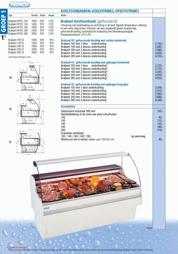 Zie productbrochure met prijzen van de Brabant koeltoonbanken (geforceerde koeling) hierboven onder het kopje 'DOWNLOAD'.