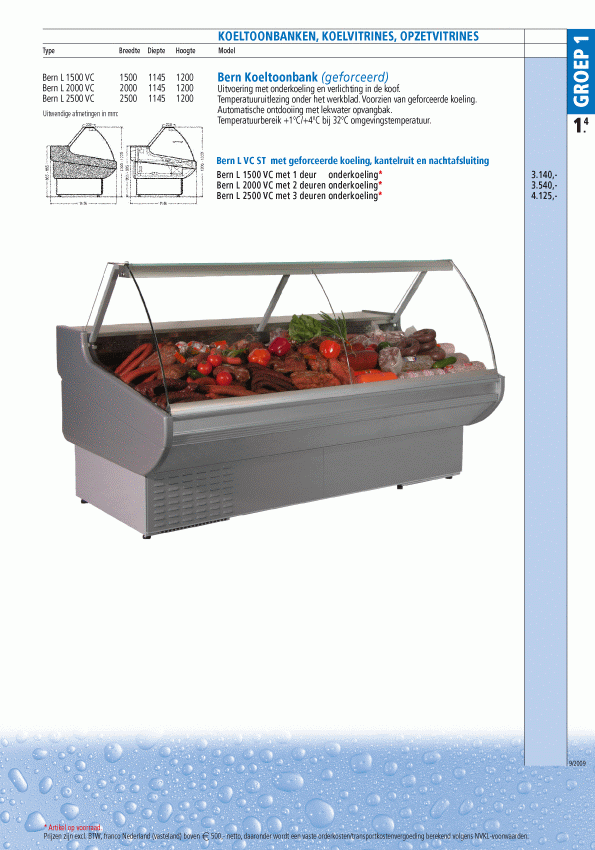 Zie productbrochure met prijzen van de Bern koeltoonbanken (geforceerde koeling) hierboven onder het kopje 'DOWNLOAD'.