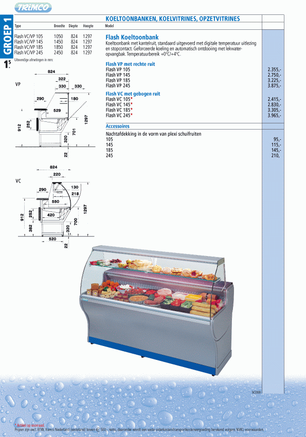 Zie productbrochure met prijzen van de Flash koeltoonbanken (geforceerde koeling) hierboven onder het kopje 'DOWNLOAD'.